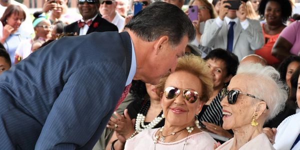 Senator Joe Manchin congratulates Dr. Katherine Coleman Goble Johnson for her many outstanding accomplishments at NASA by being the woman who was responsible for her role in getting Astronaut John Glenn back to earth during his return from orbit. She has just celebrated her one hundredth year old birthday.