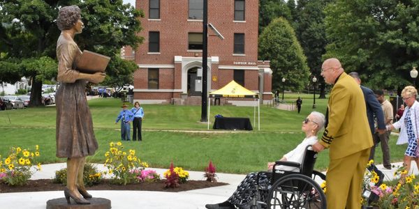 Dr. Katherine Coleman Goble Johnson once attended West Virginia State University. She is one hundred years old and seventy-five family members came to see the unveiling of her statue and her first scholarship recipients.