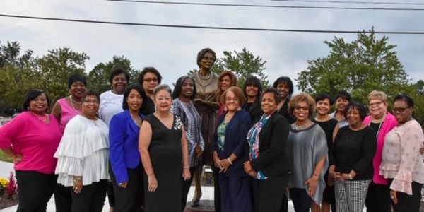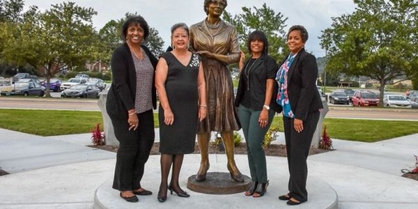CWIL Executive Board Members at the Katherine Coleman Goble Johnson Statue: From left to right: Mrs. Versie Hill, Treasurer, Twana White, Vice President, Lisa Bradley, Parliamentarian, Mrs. Natasha Hairston-Tyson, President.